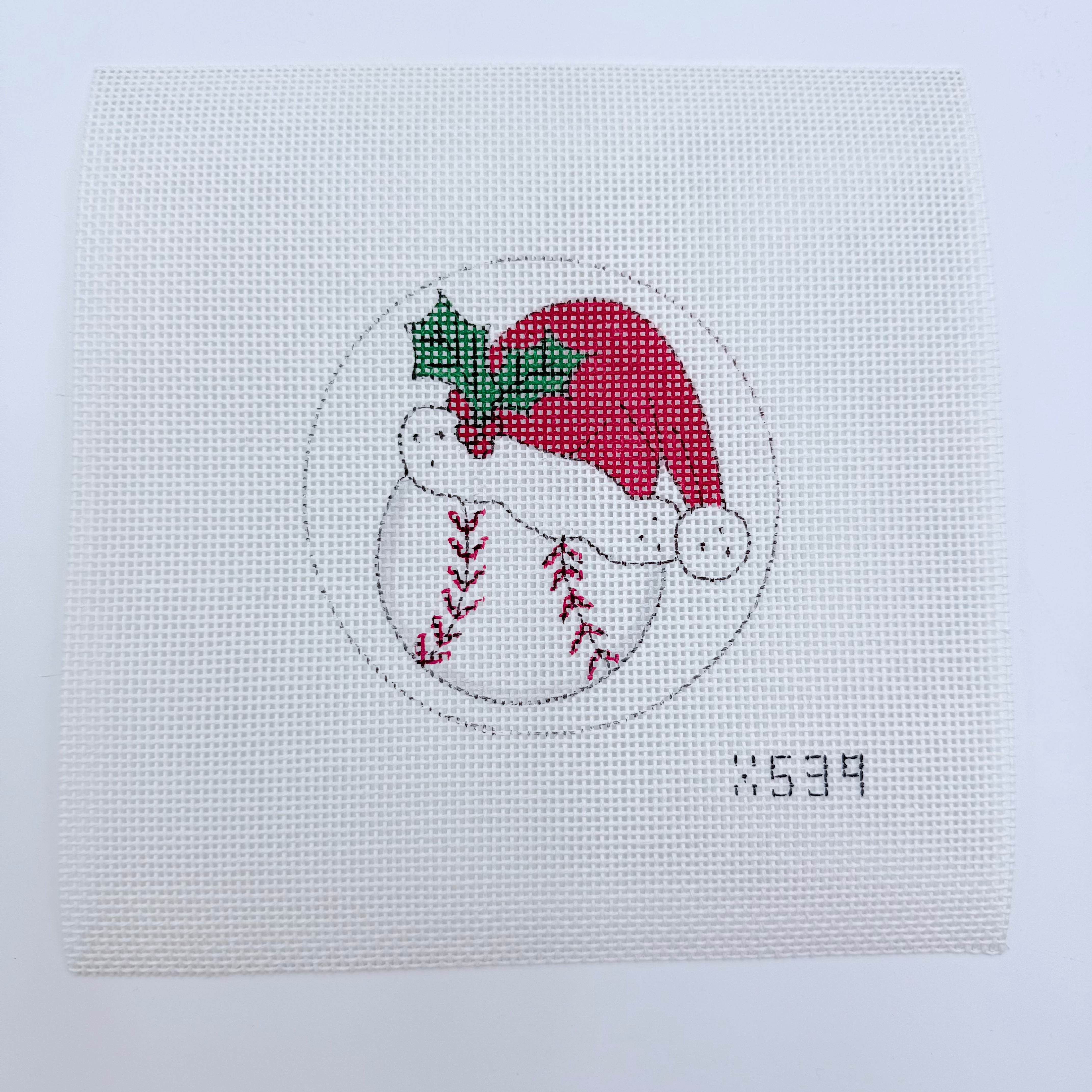 Baseball with Santa Hat Needlepoint Canvas