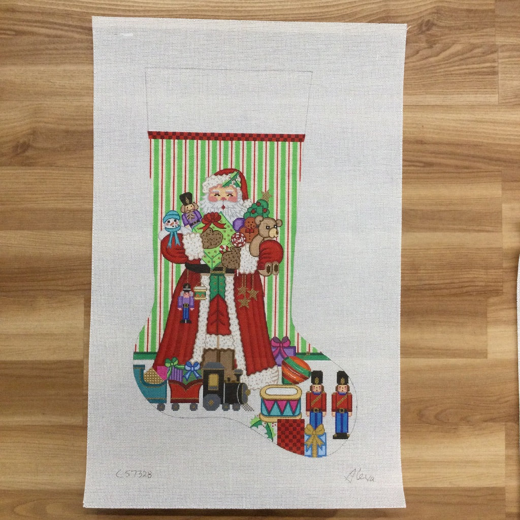 Santa with Boy Toys Stocking Needlepoint Canvas