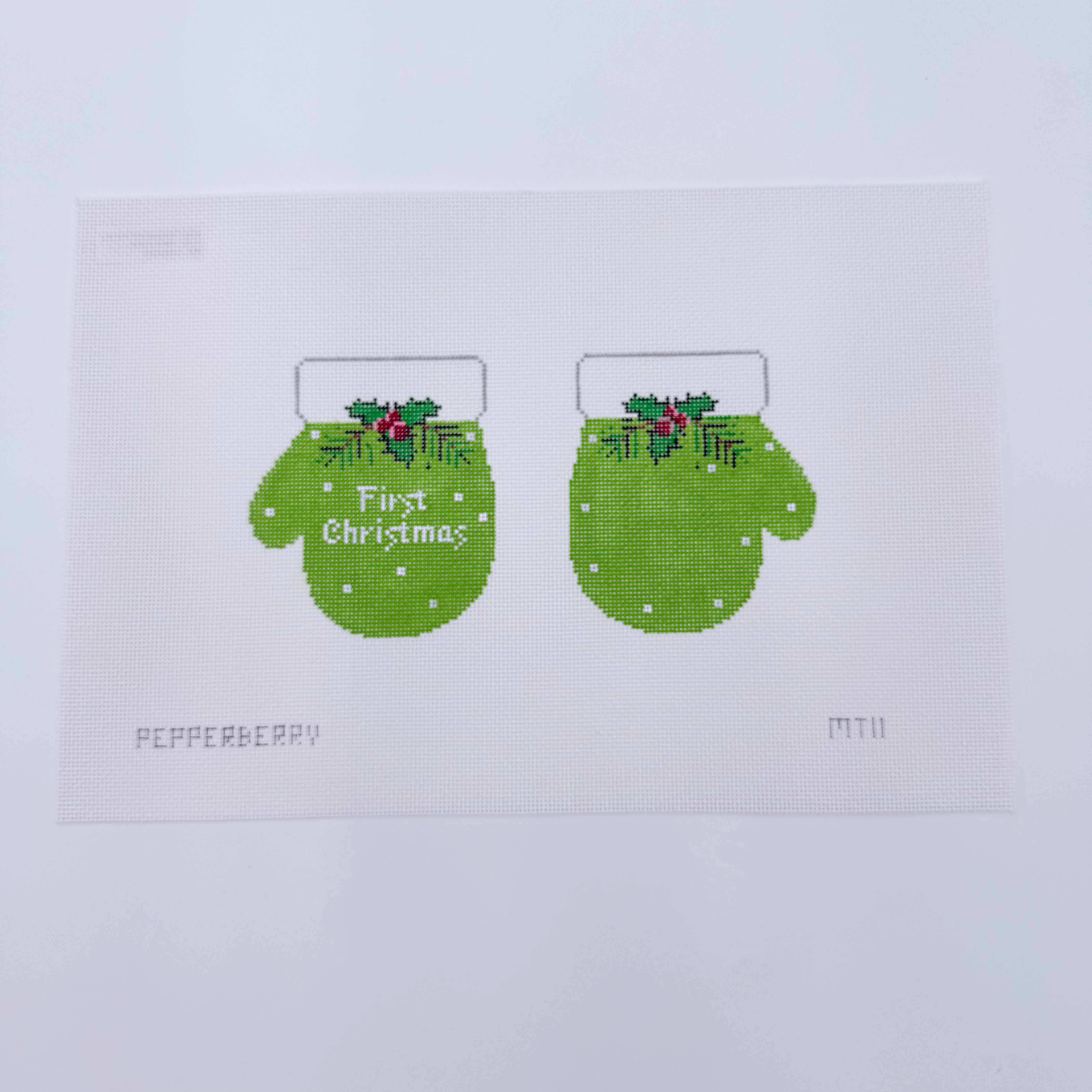 Green First Christmas Mittens Needlepoint Canvas