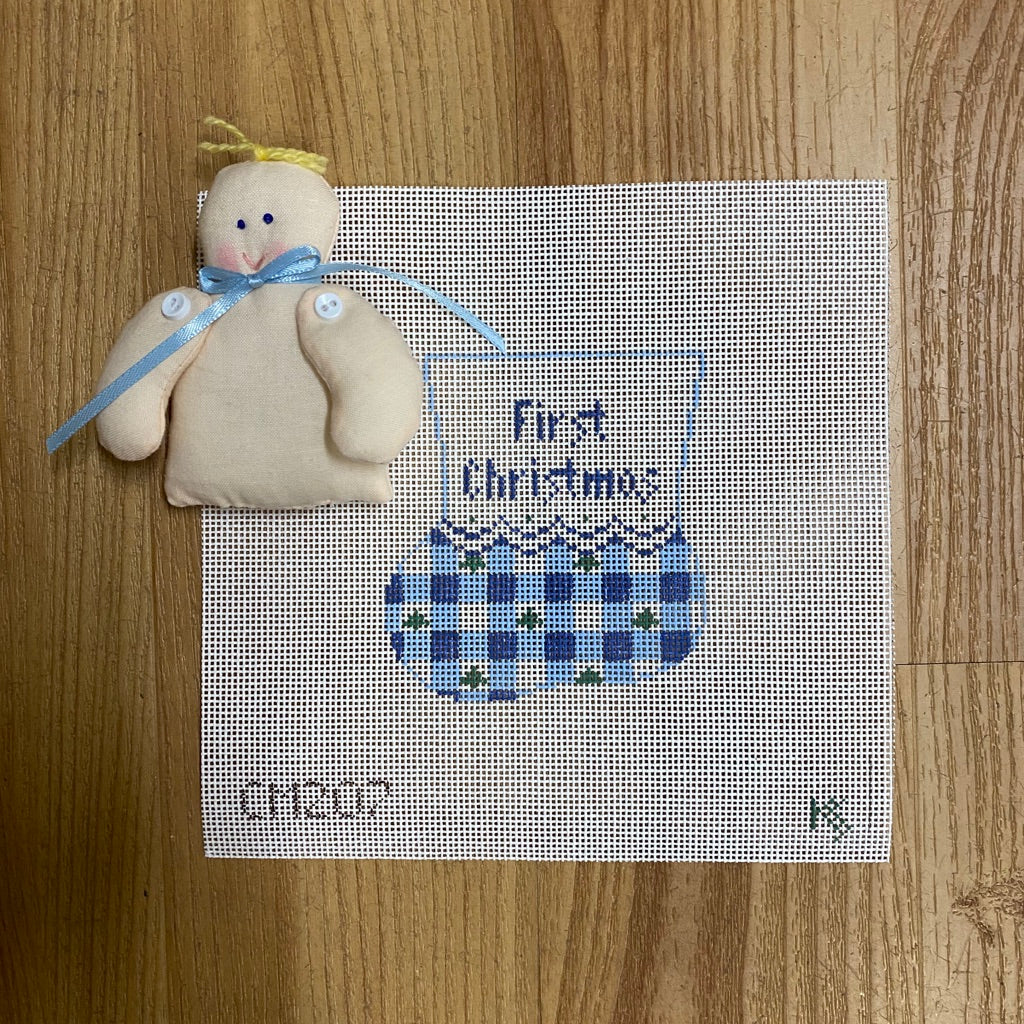 Blue Gingham Mini Sock Needlepoint Canvas with Baby Boy Insert
