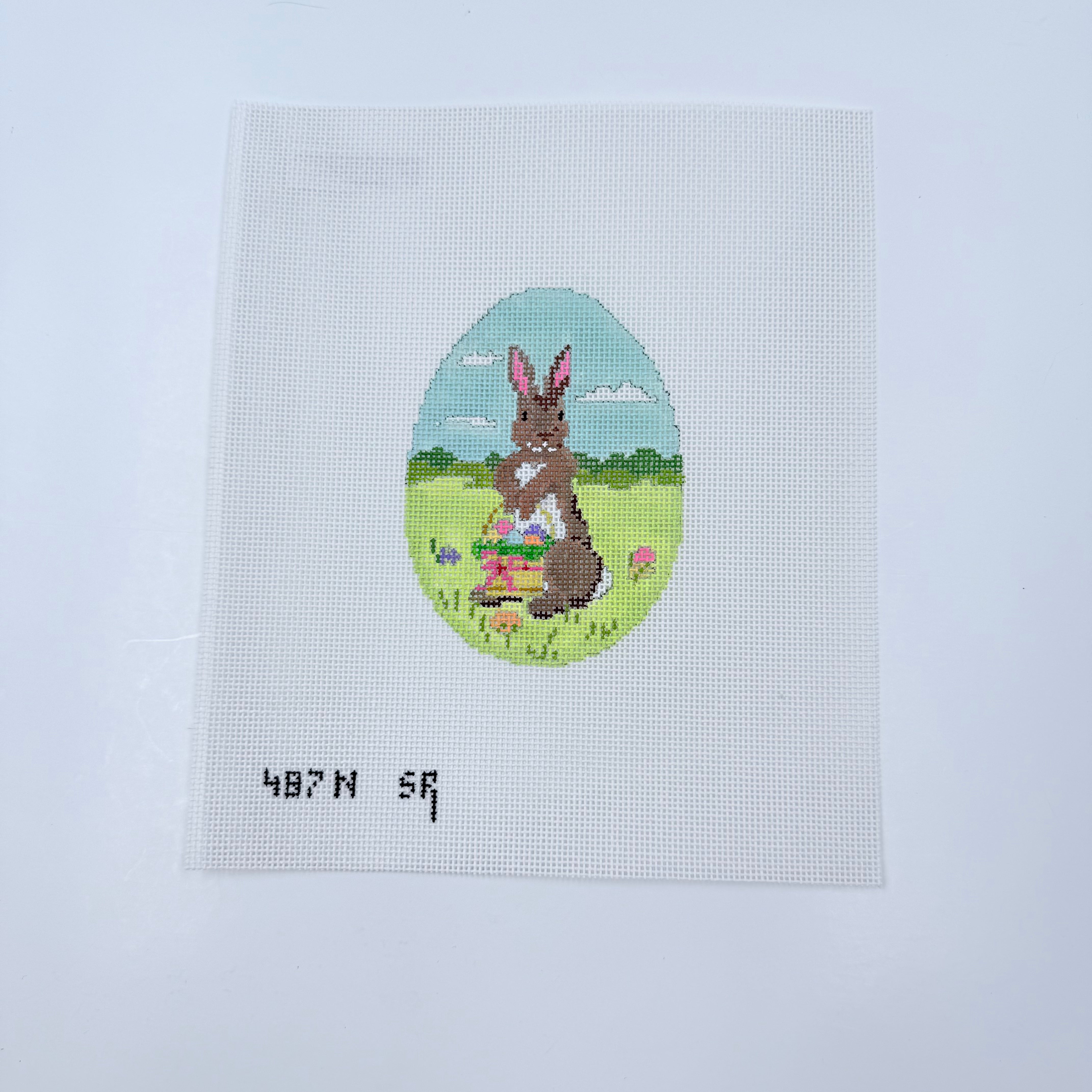 Rabbit with Basket of Eggs on Egg Needlepoint Canvas
