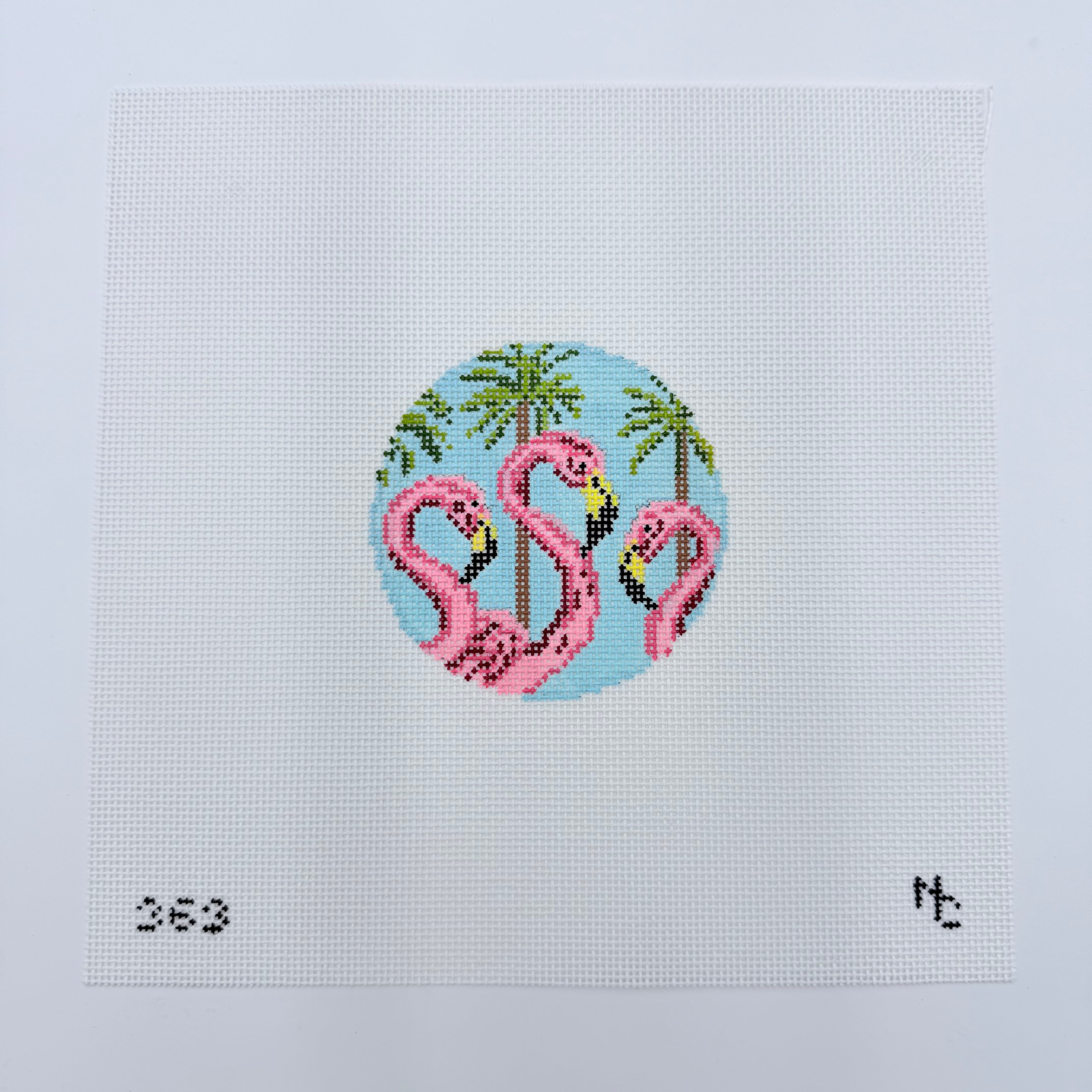Flamingo Trio Round Needlepoint Canvas