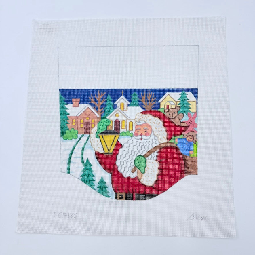 Santa with Lantern and Church Stocking Cuff Needlepoint Canvas