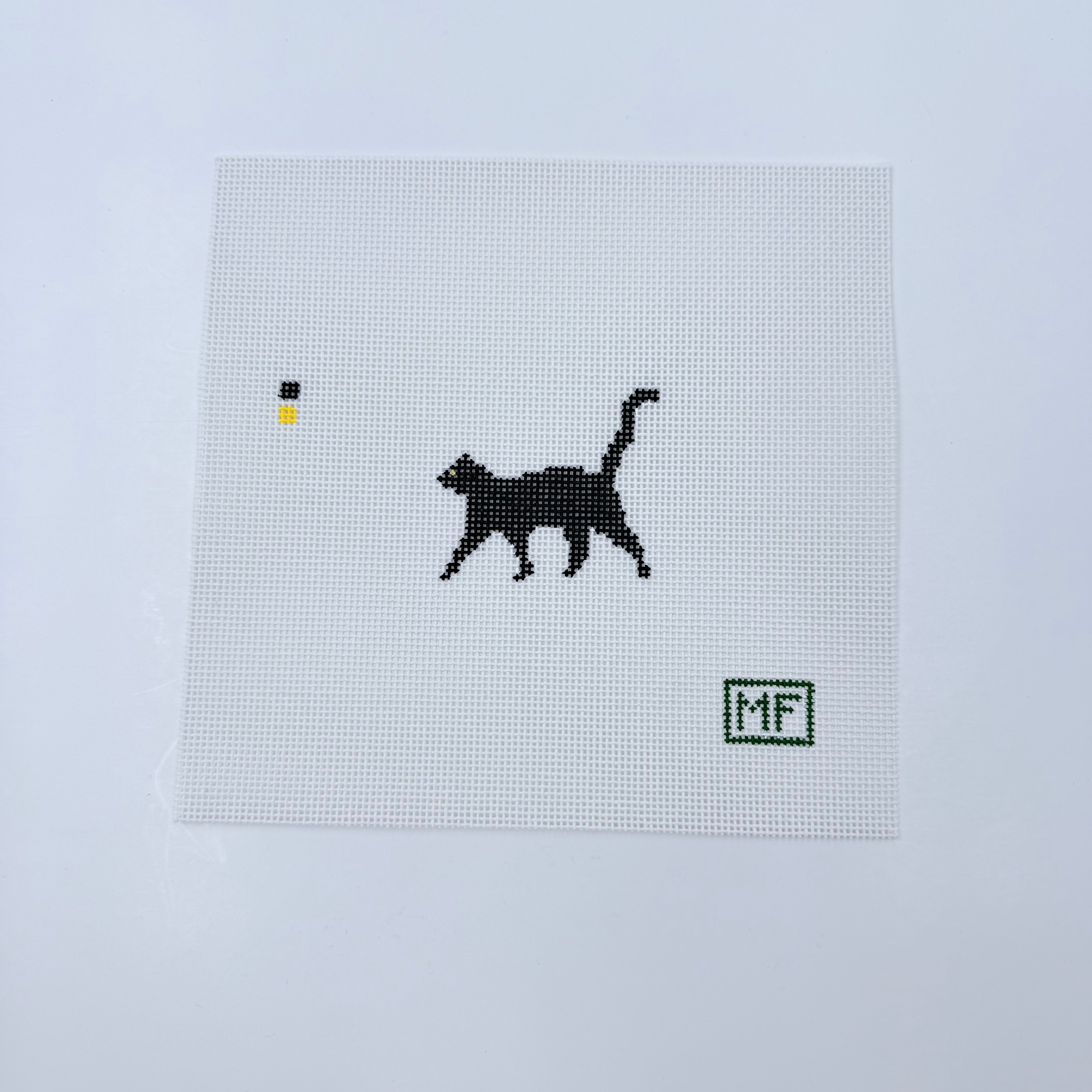 Walking Black Cat Mini Needlepoint Canvas