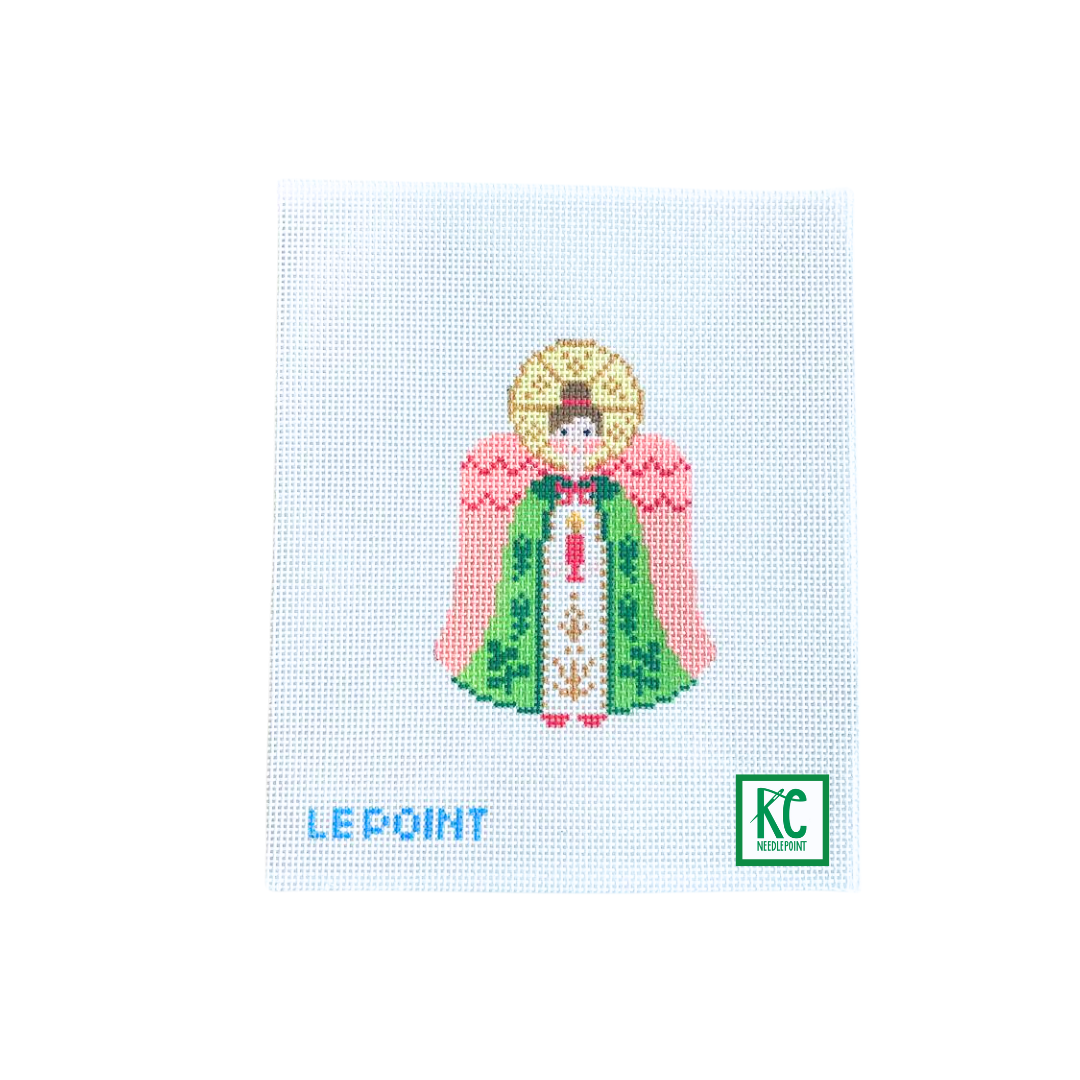 Green and Coral Angel Needlepoint Canvas