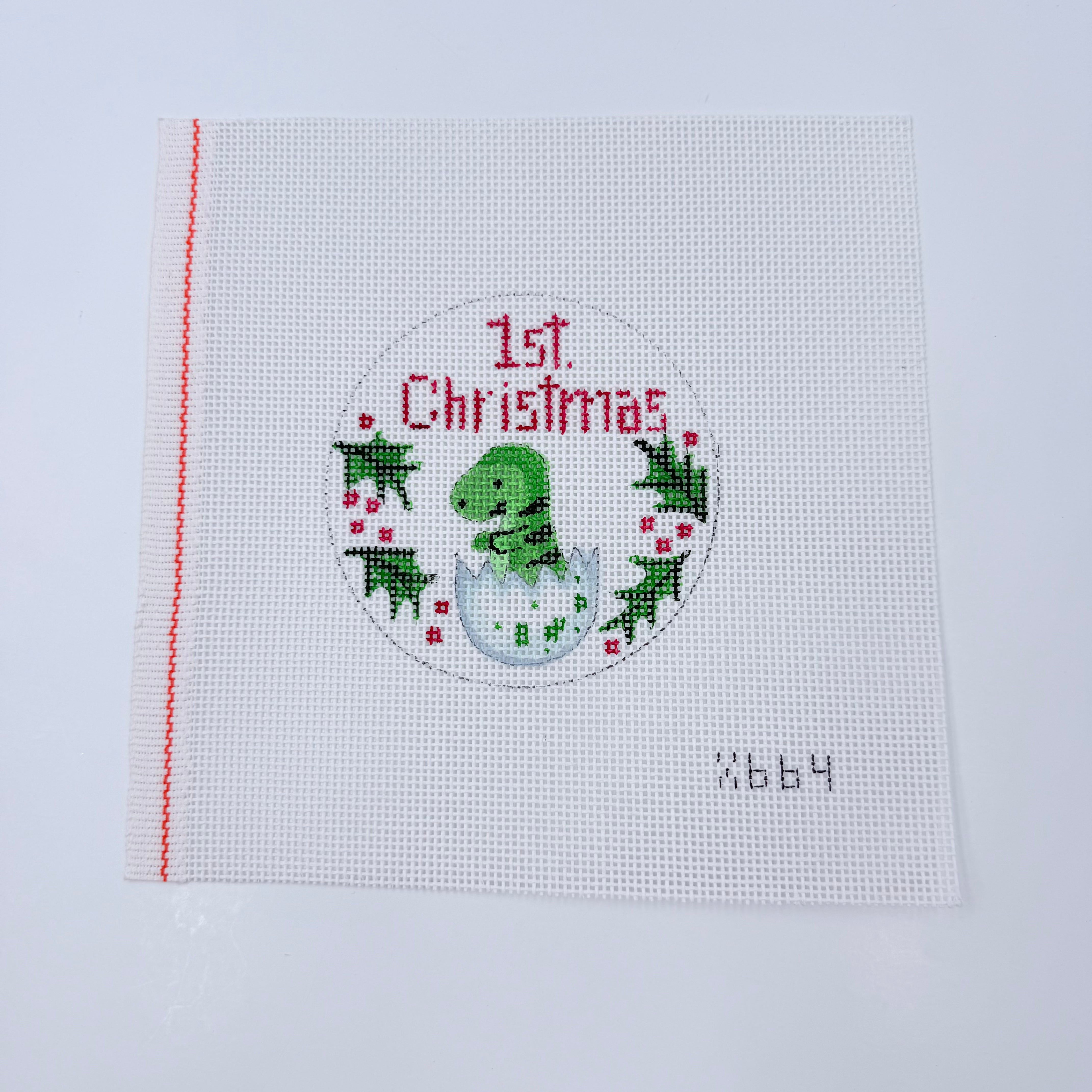 Dino's First Christmas Round Needlepoint Canvas