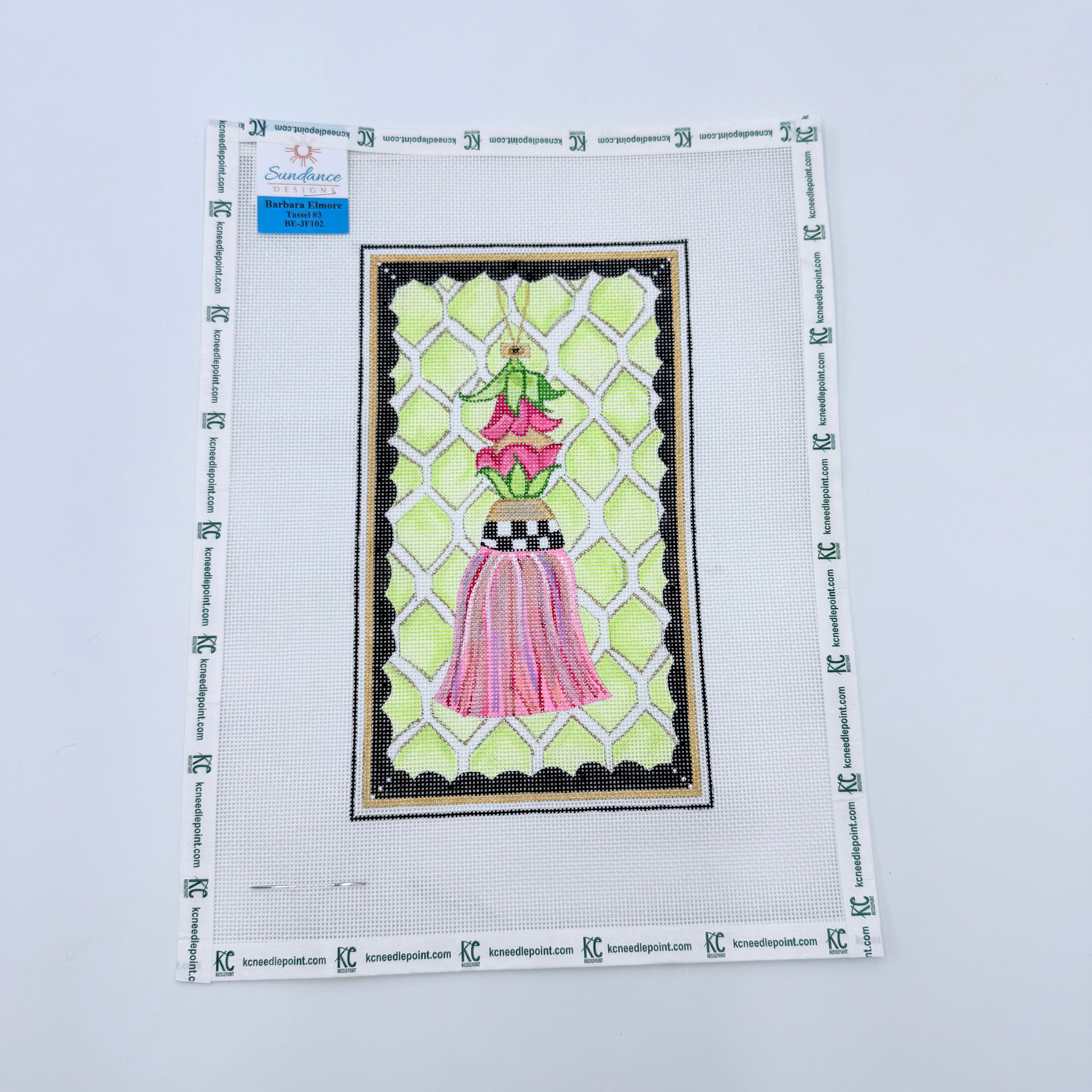 Pink and Green Tassel Needlepoint Canvas