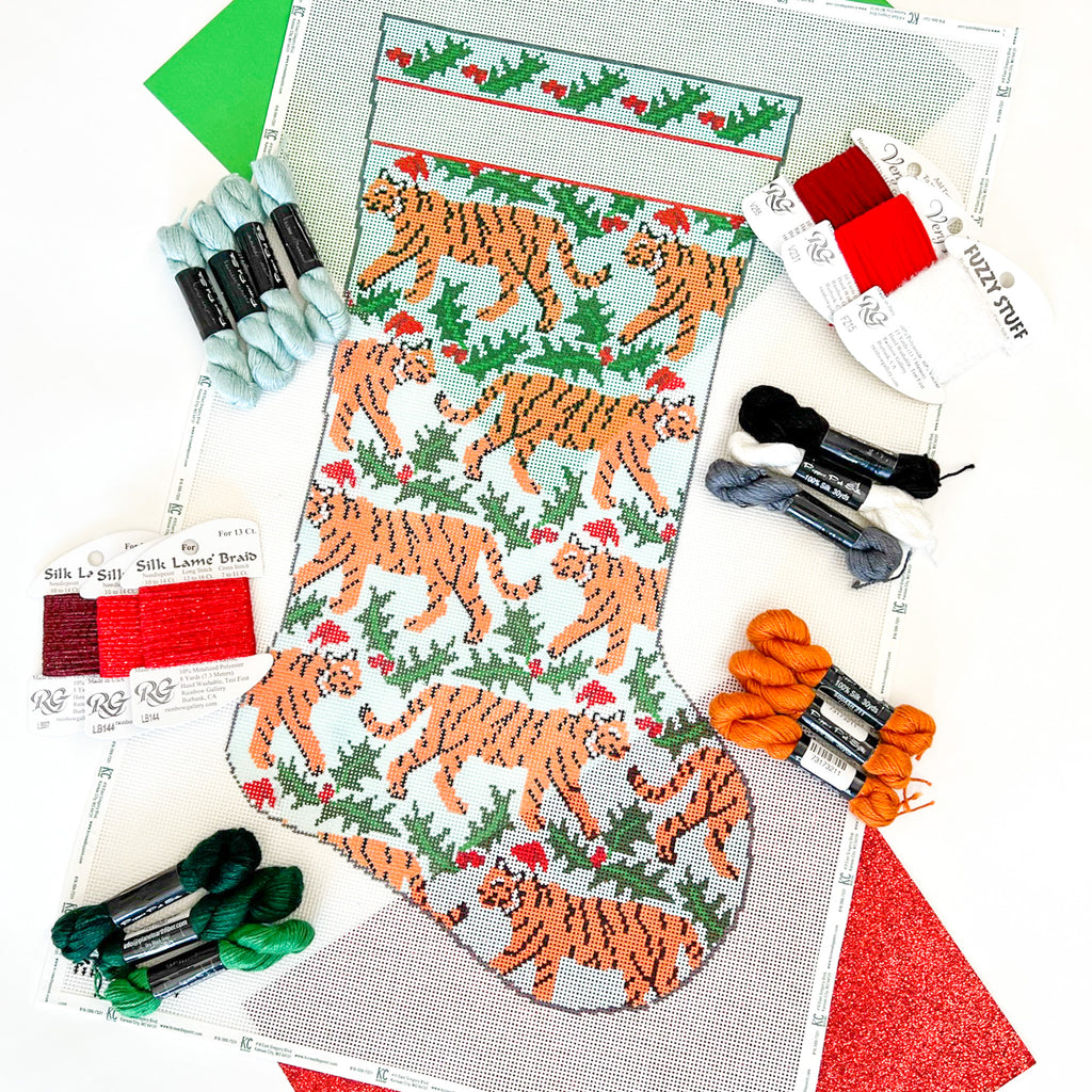 Tiger and Holly Needlepoint Stocking Kit