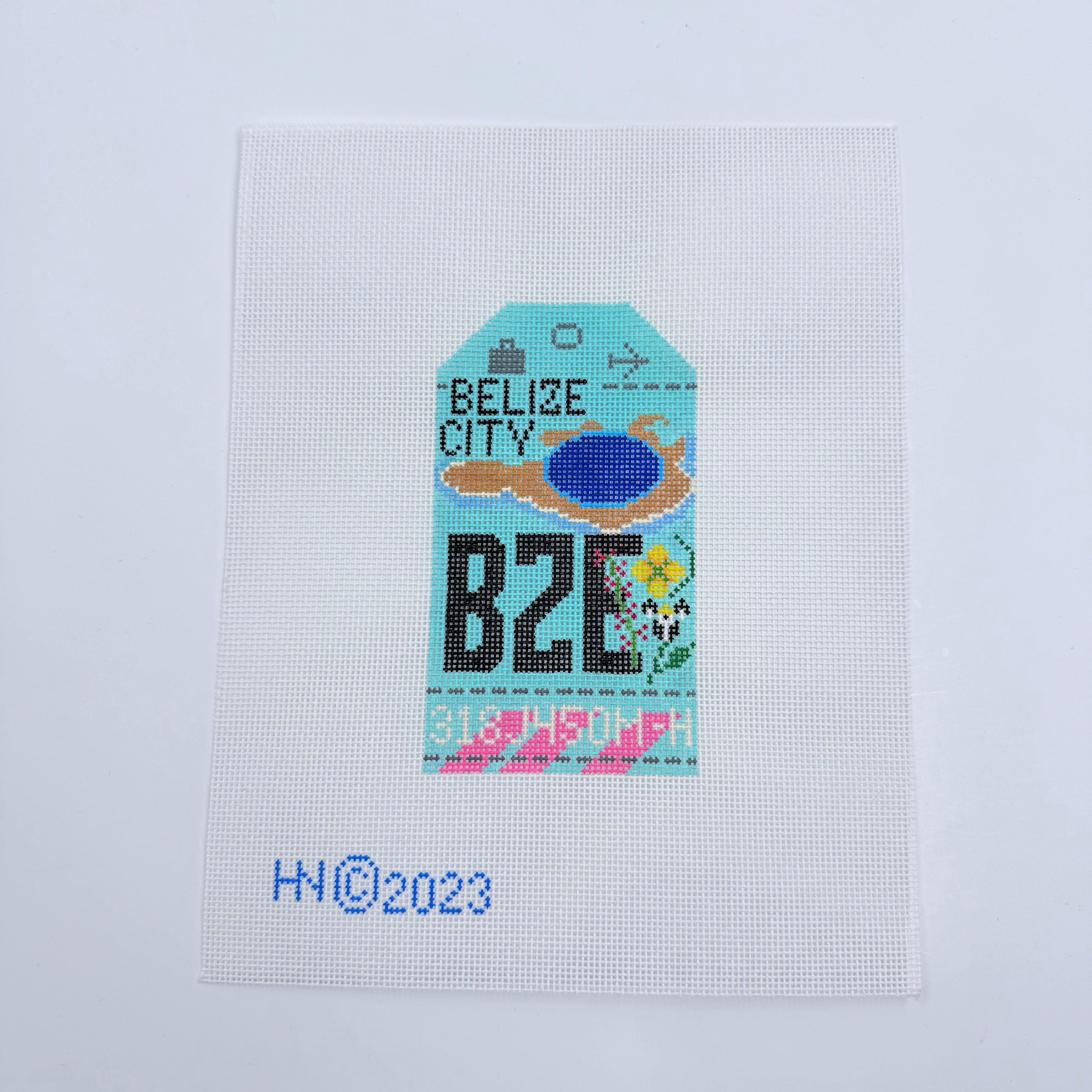 Belize Vintage Travel Tag Needlepoint Canvas