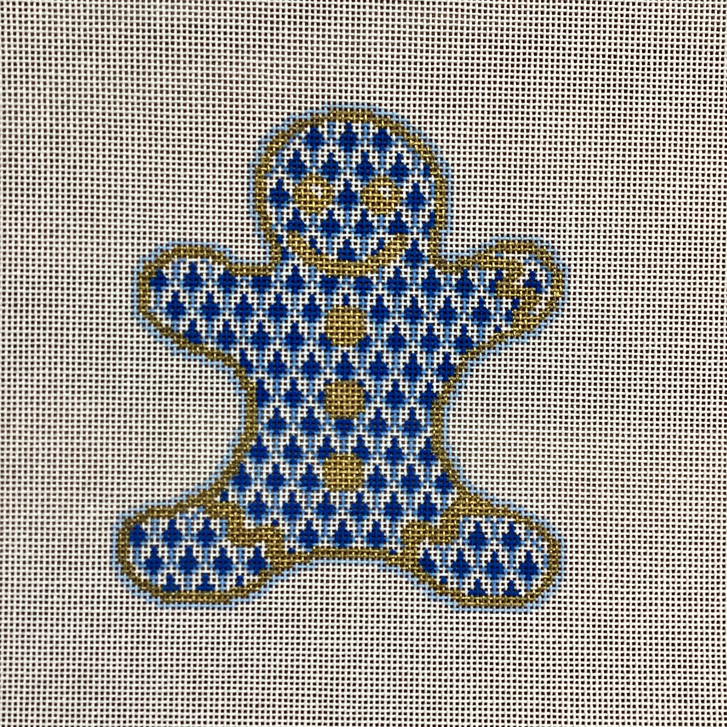 Blue Gingerbread Man Needlepoint Ornament Canvas