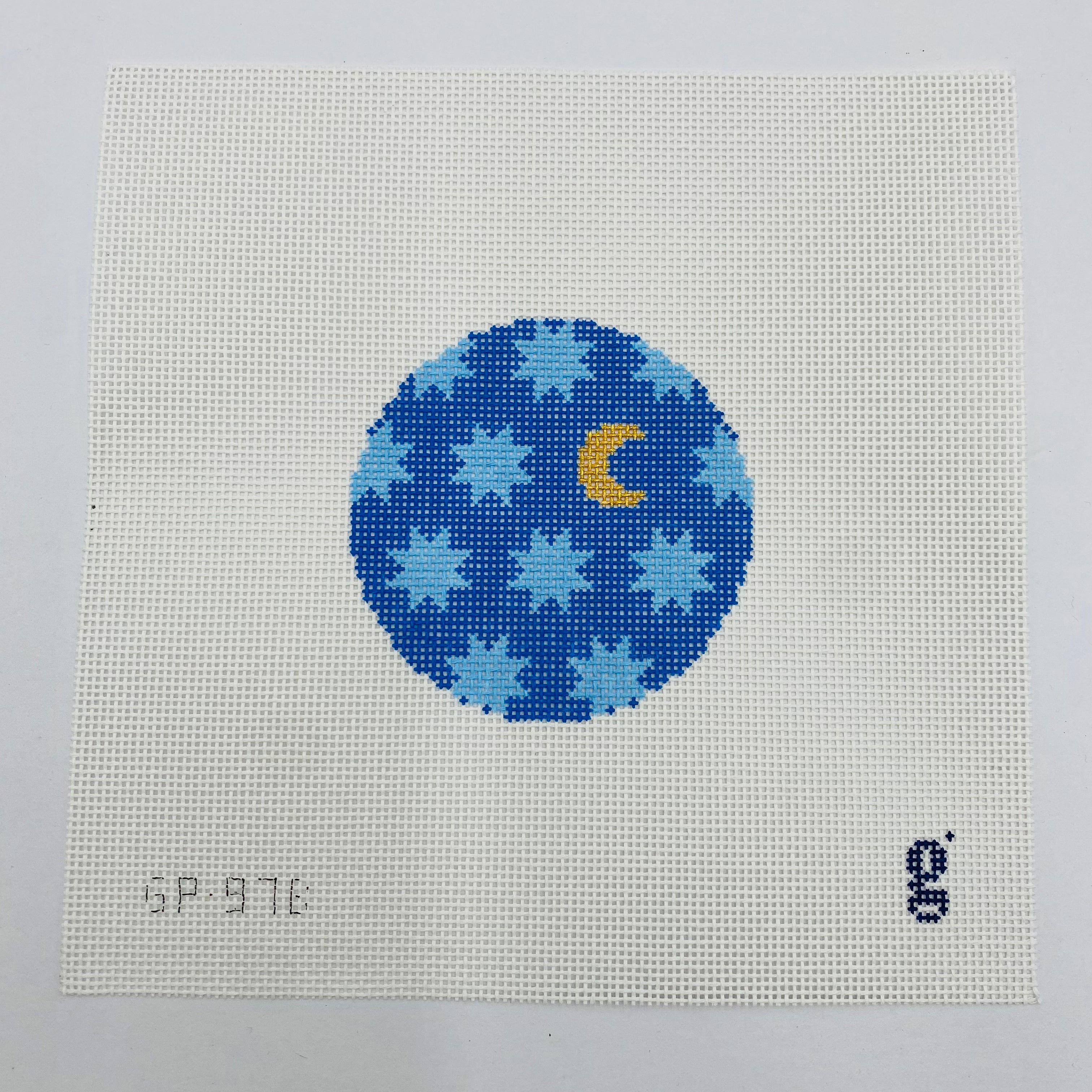 Blue Moon and Stars Round Needlepoint Canvas