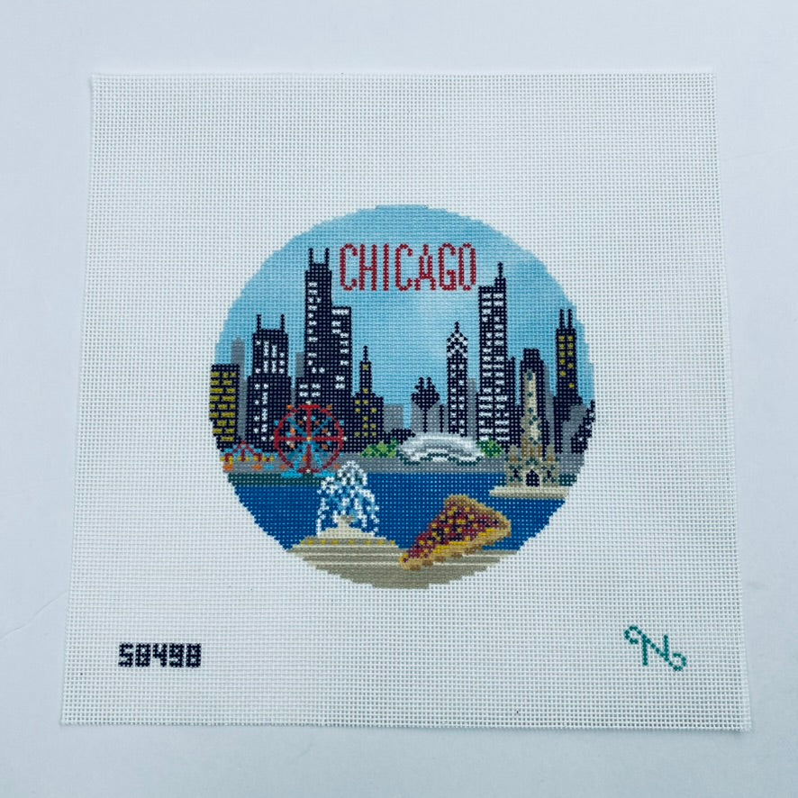 Chicago Needlepoint Travel Round Canvas