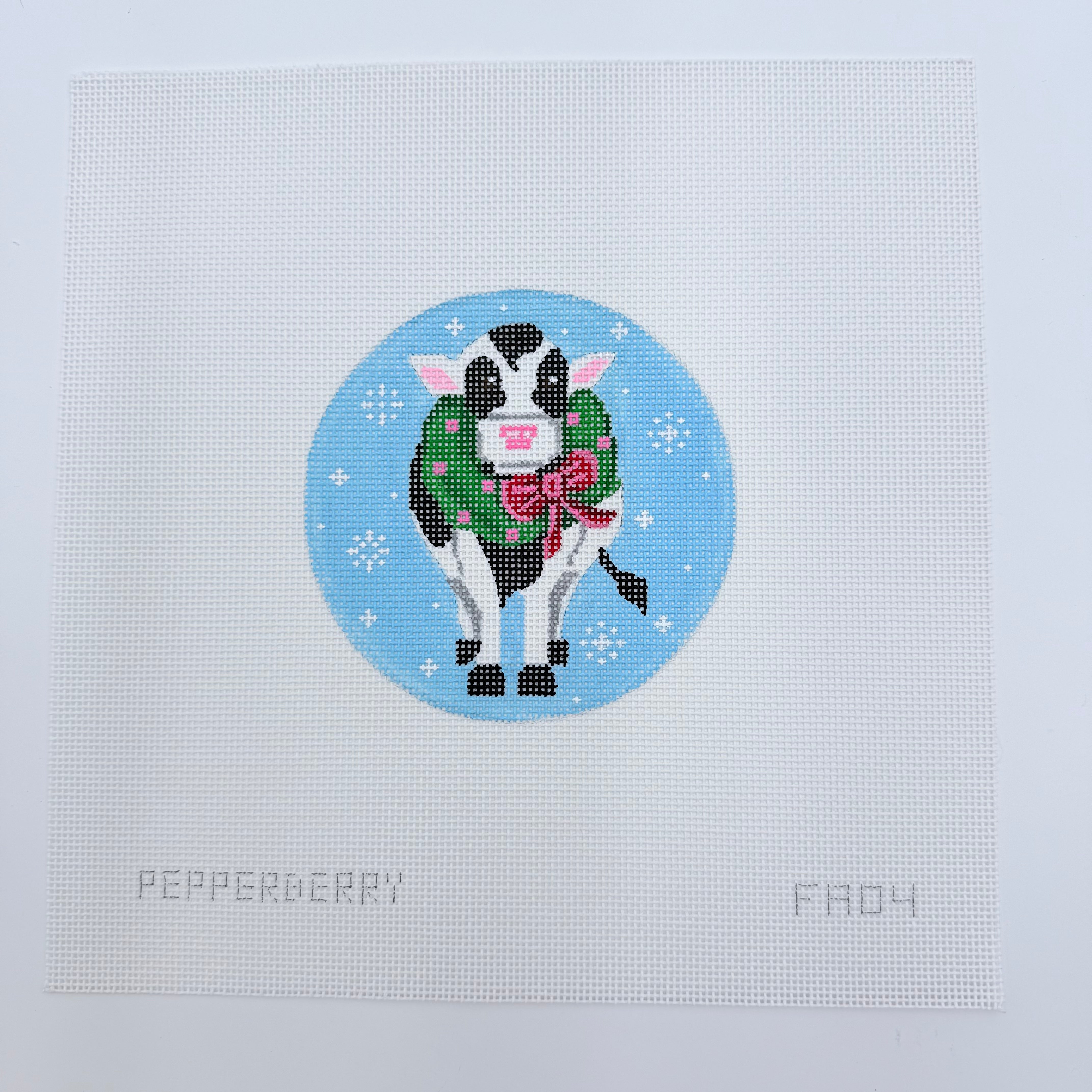 Cow with a Wreath Needlepoint Ornament Canvas