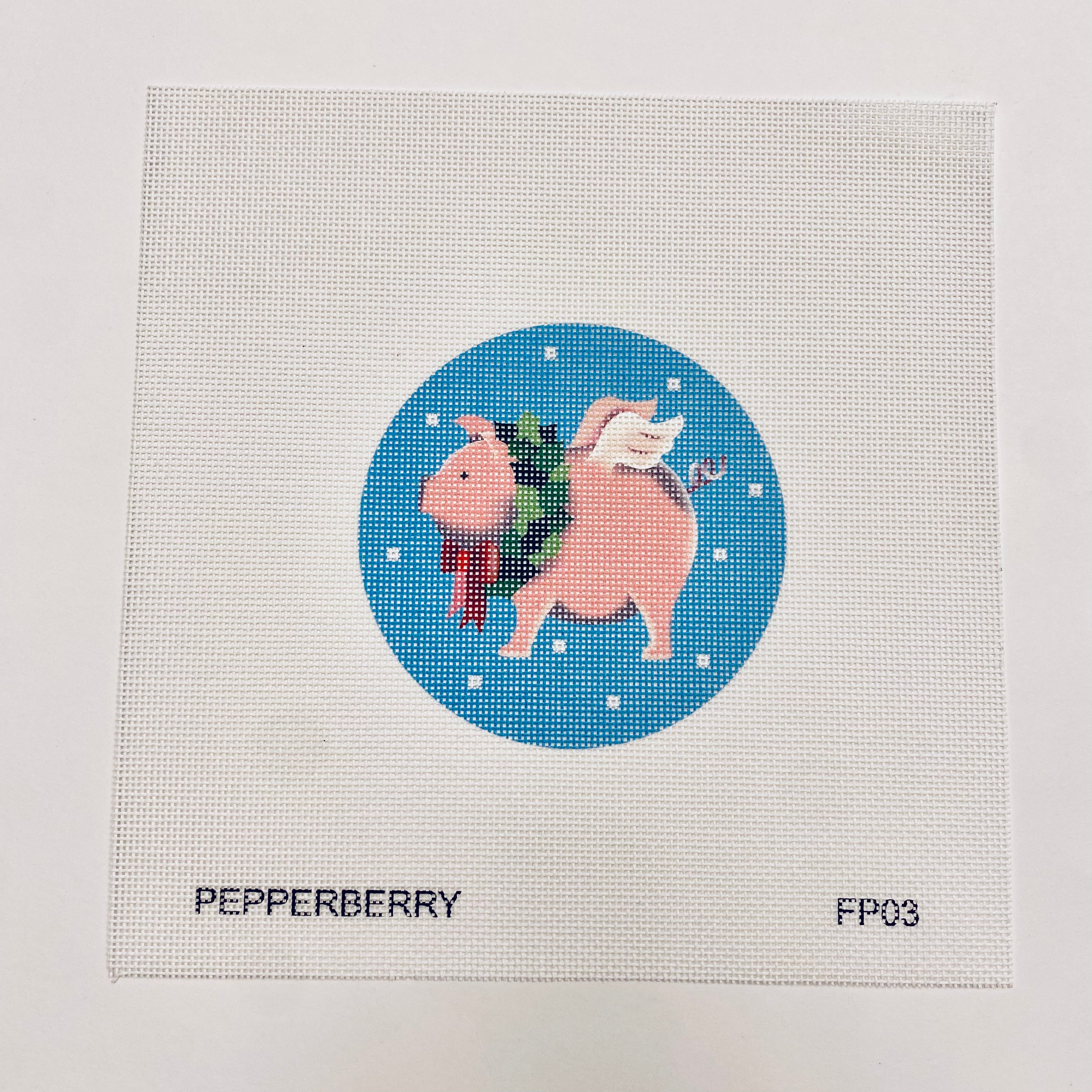 Flying Pig with Wreath Needlepoint Ornament Canvas