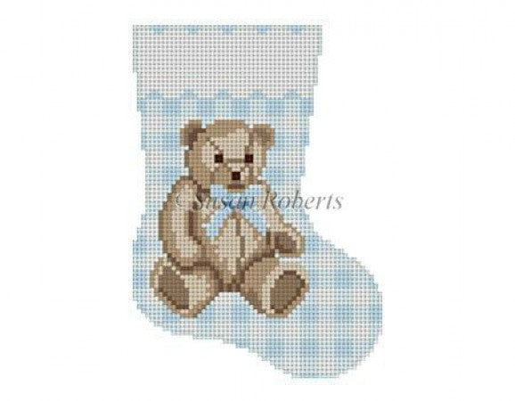 Gingham Teddy Blue Mini Sock Needlepoint Canvas