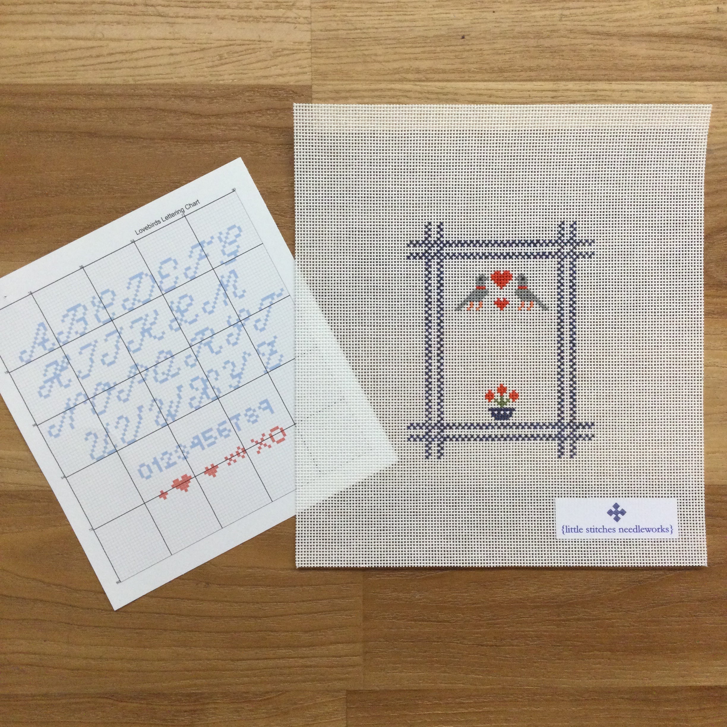 Lovebirds Ornament Needlepoint Canvas with Letter Chart