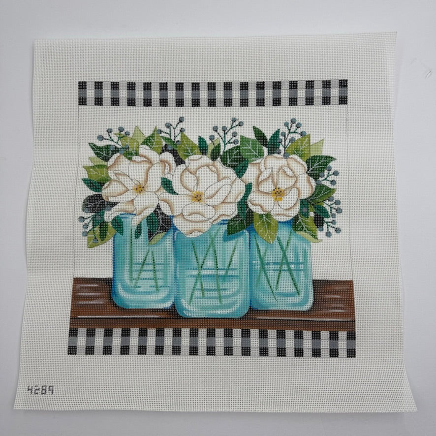 Magnolias and Mason Jars Needlepoint Canvas