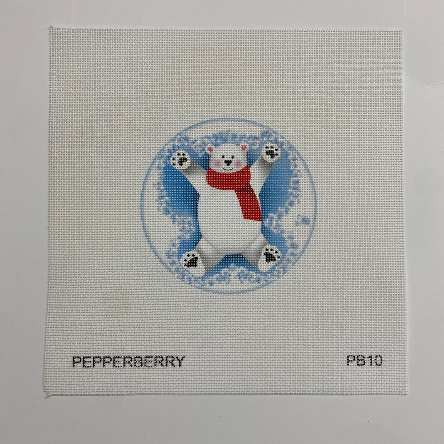 Polar Bear Snow Angel Needlepoint Canvas