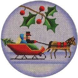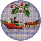 Red Sleigh Needlepoint Round Canvas
