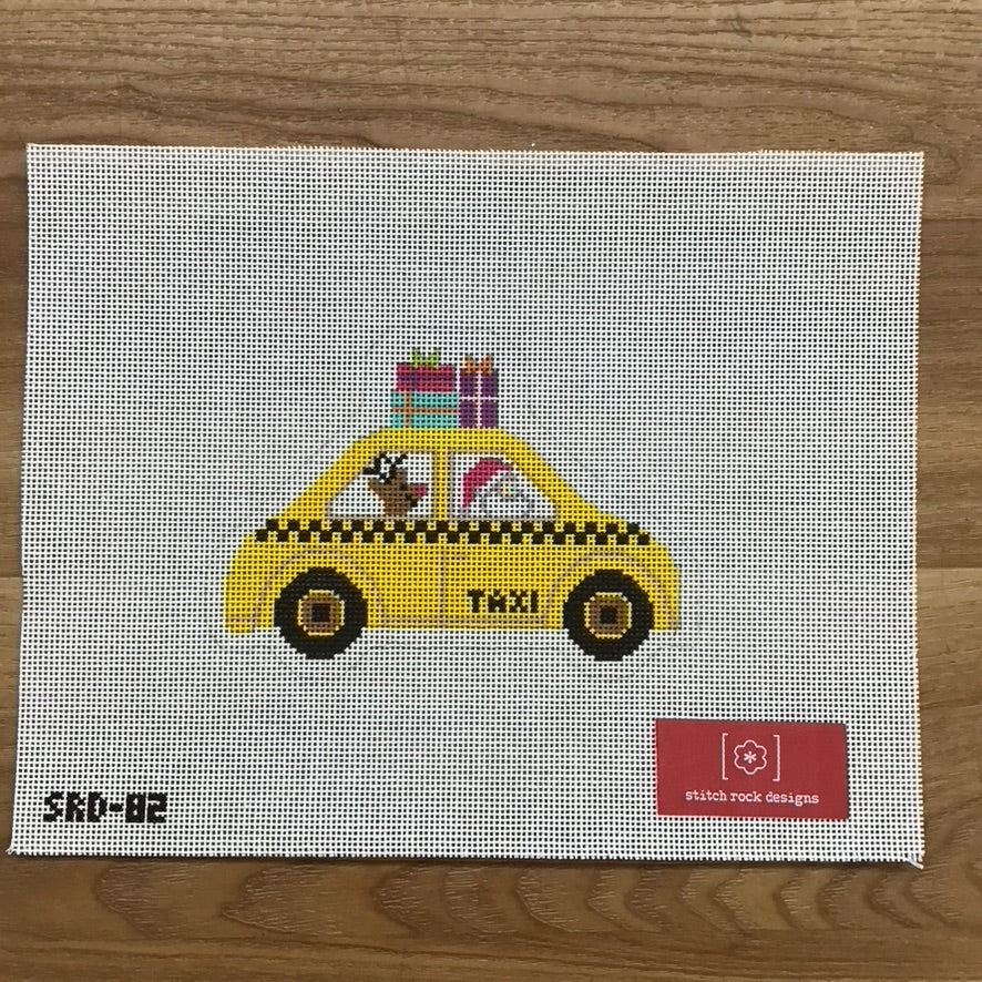Santa in Taxi Needlepoint Canvas