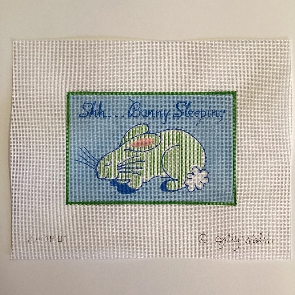 Shh...Bunny Sleeping Blue Elephant Needlepoint Canvas