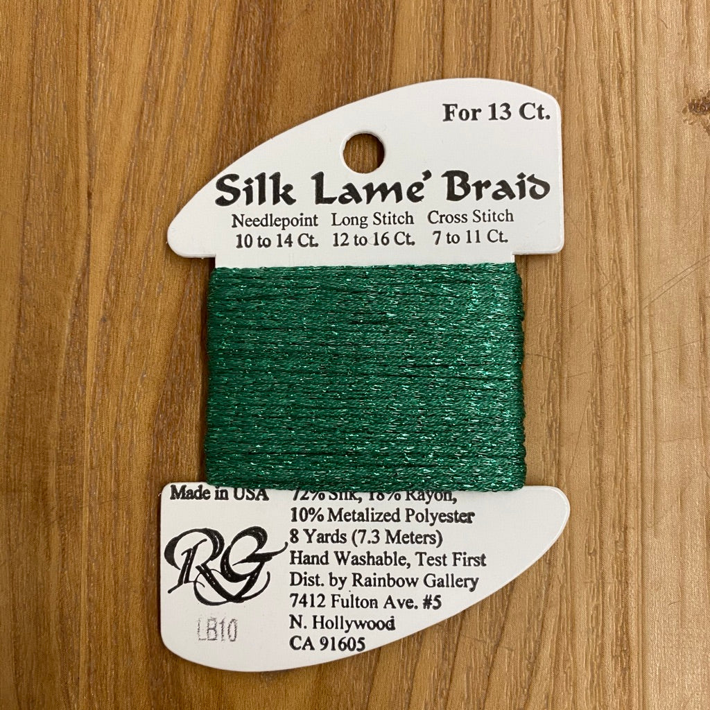 Silk Lamé Braid LB10 Green is backordered and will ship as soon as it is back in stock.