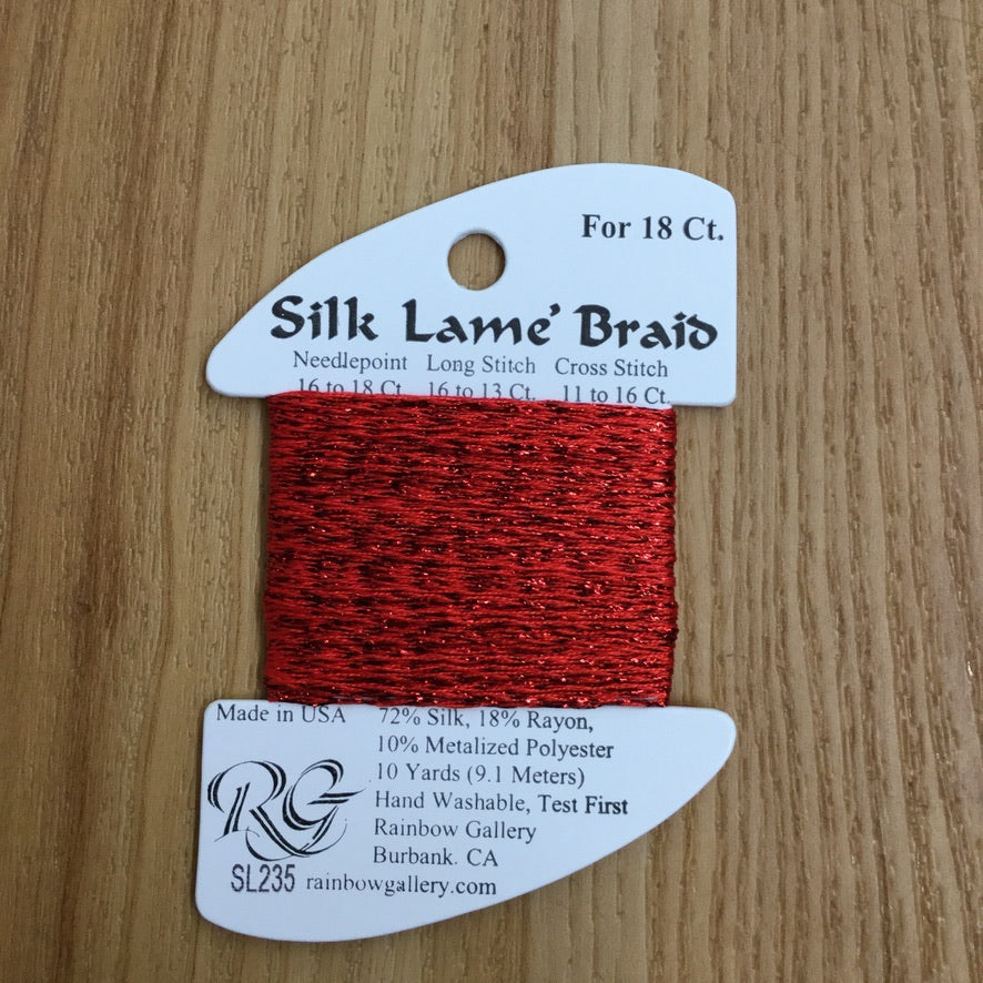 Silk Lamé Braid SL235 Flame Scarlet is backordered and will ship as soon as it is back in stock.