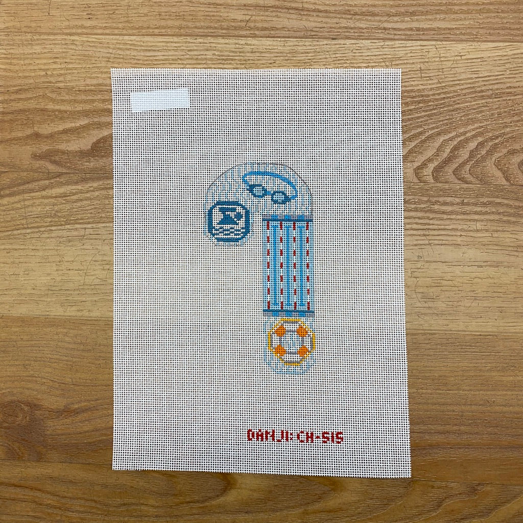 Swimming Candy Cane Ornament Needlepoint Canvas