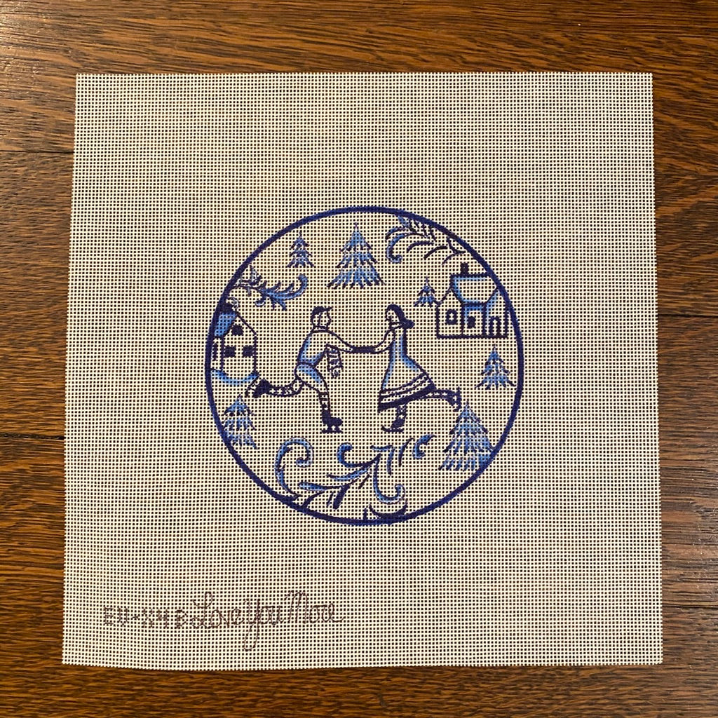 Toile Skaters Blue Needlepoint Canvas
